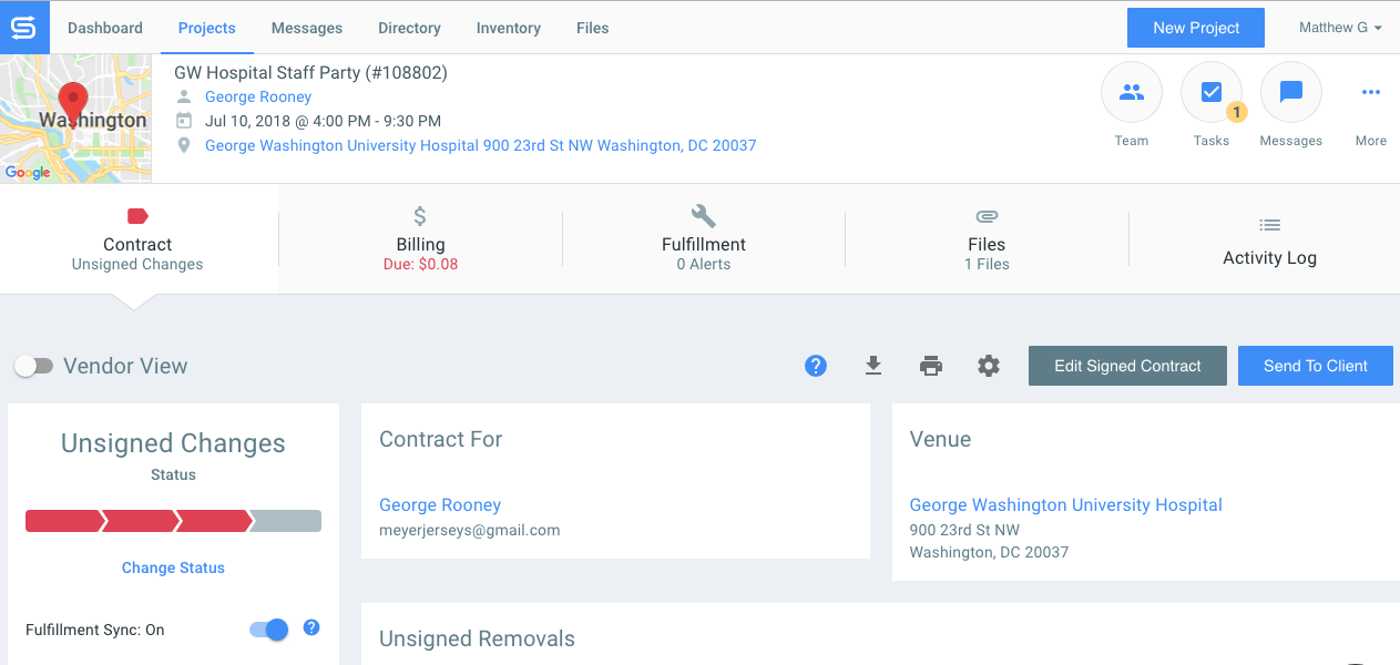It is very important to be able to see all of your clients’ activity within a project. This could include signing a contract, paying for a project, or saving a credit card on file. Knowing exactly when all of these activities took place add layers of protections for your and your event rental company.