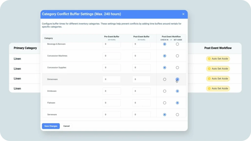 Were they damaged? Lost? Still at the venue? Without Auto Set Asides, you might not notice until you try to book them for another event — and by then, the trail is cold.