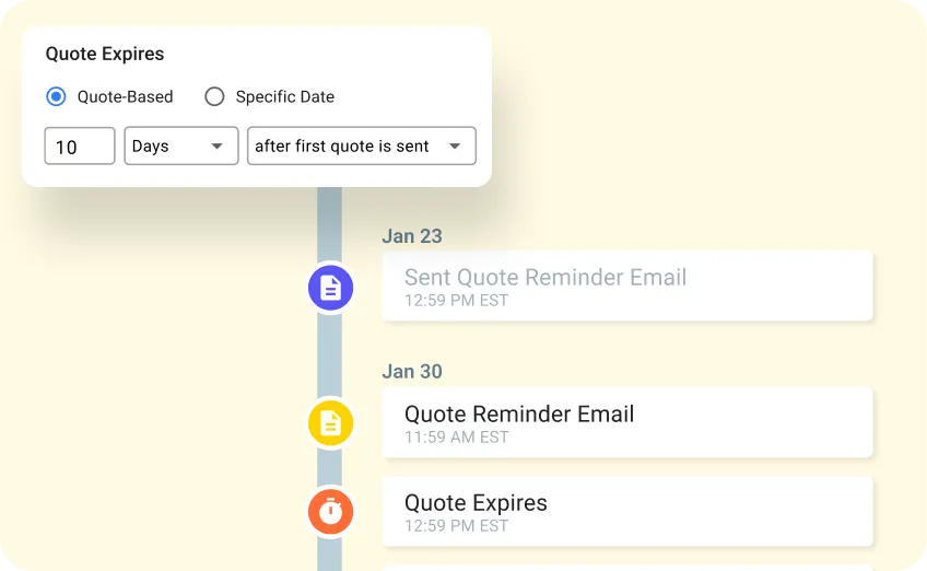 Quote reminders, balance-due notices, thank-yous — triggered automatically so nothing falls through the cracks.