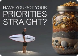 Rocks, pebbles, and sand. Think of your time as a jar you want to fill completely. Rocks are your biggest initiatives that truly move the business forward. Pebbles are tasks that’ll help in the next few months. Sand is daily stuff that has to get done.